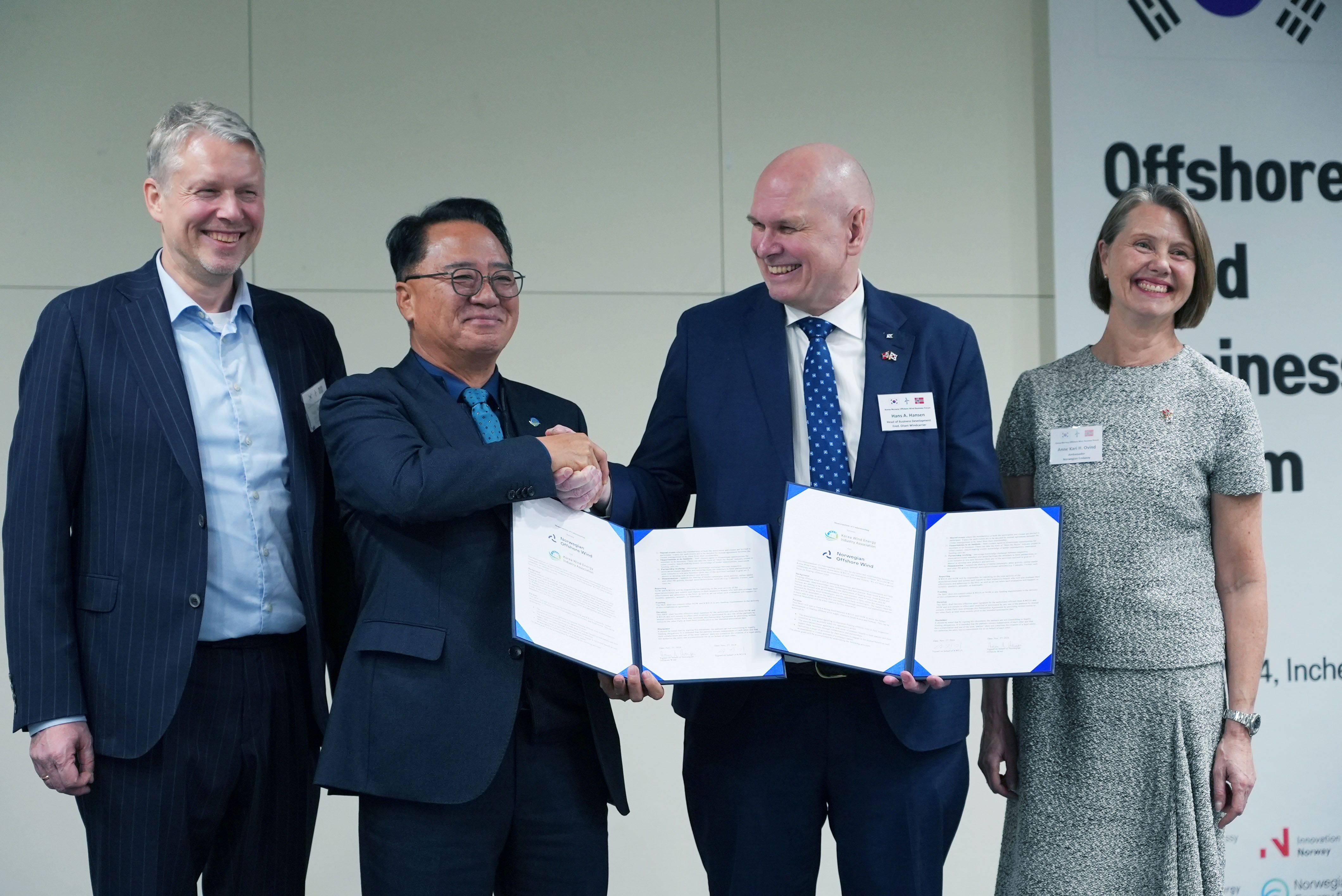 - We in Norway see great potential in the Korean offshore wind market. The supply chains in these two countries can build on each other’s capabilities, and we hope to further strengthen our collaboration through this MOU with our friends in KWEIA, says Hans Hansen, who leads the Working Group for South Korea in Norwegian Offshore Wind.
